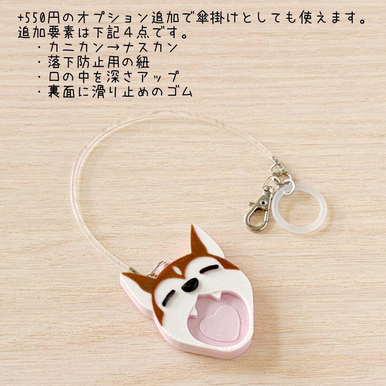 あくびするお口の中を深くすることで傘の持ち手を掛けやすくしています。