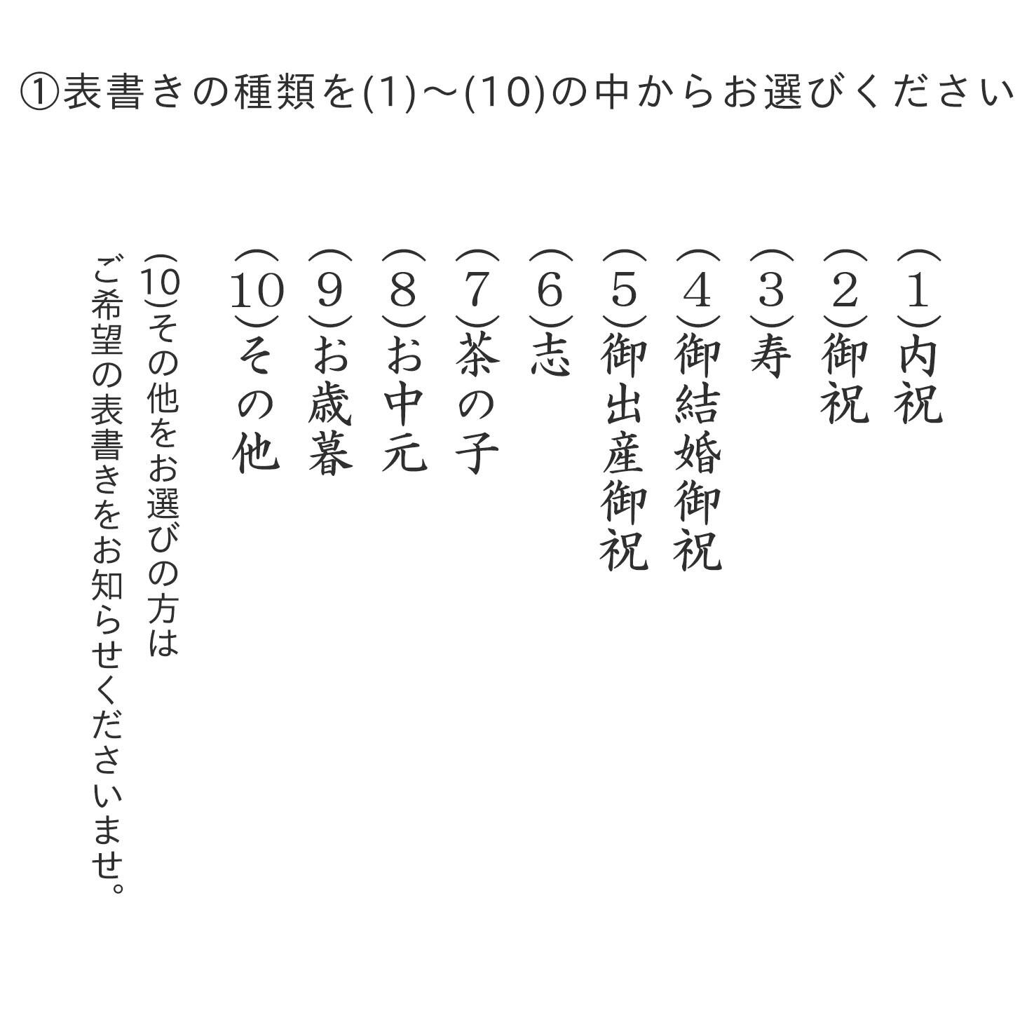 表書き・水引の種類・名入れを、ご自由に変更していただけます。