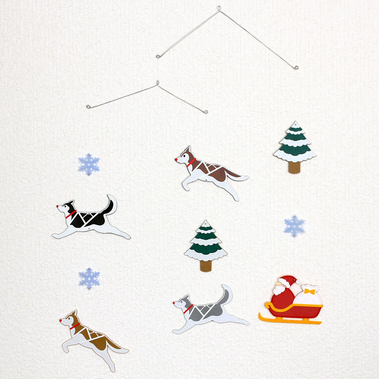 犬ぞりサンタさんのモビール【クリスマス/シベリアンハスキー】