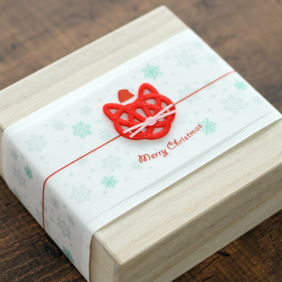 クリスマスデザインの熨斗紙と、3Dプリンターで作った、