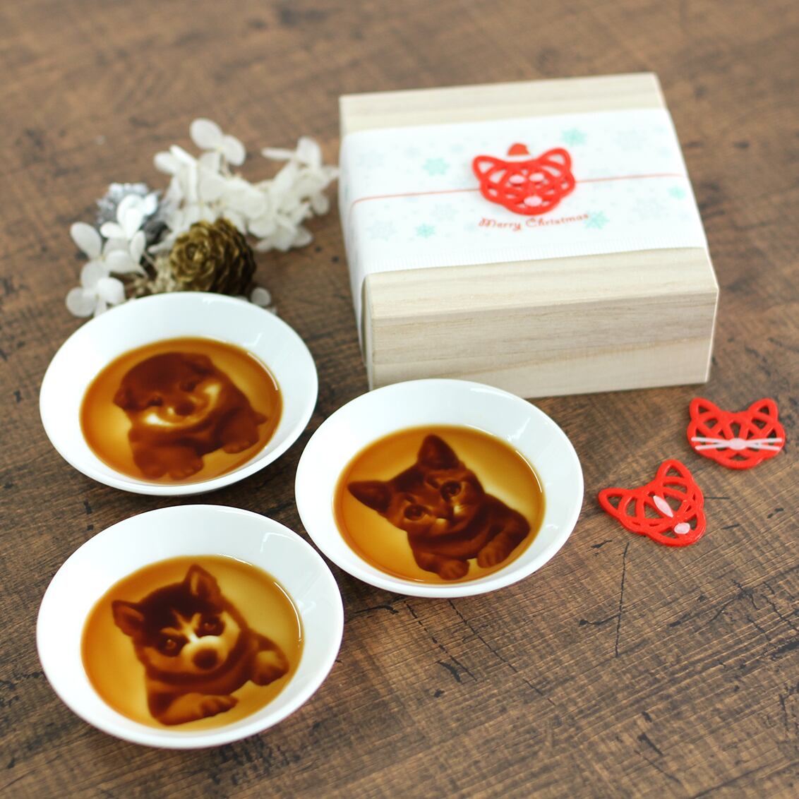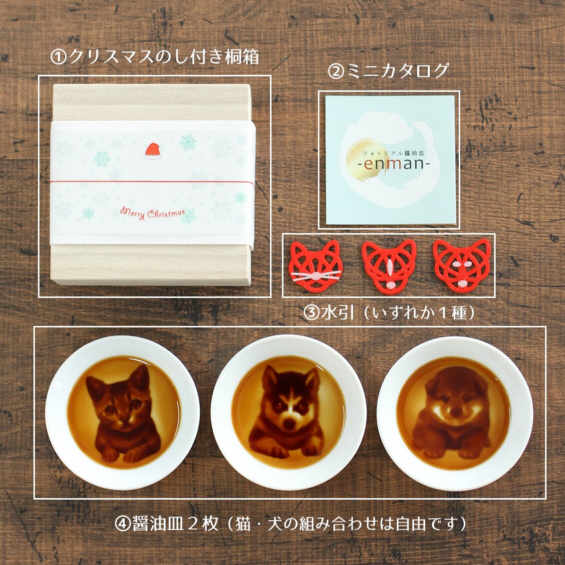 フォトリアル醤油皿-enman-*☆~犬・猫クリスマス 2枚セット~☆*